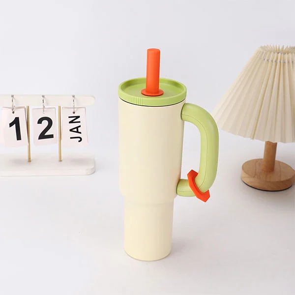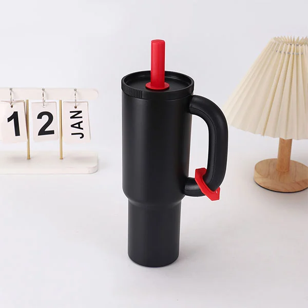 Вакуумски изолирани промет од нехрђајућег челика од нехрђајућег челика са дршком и сламом израђен је од висококвалитетног нехрђајућег челика, са унутрашњом облогом од 304 нехрђајућег челика који испуњава стандарде безбедности хране, обезбеђујући сигурну употребу. Схелл је направљен од нерђајућег челика 201, пружајући додатну структурну снагу.