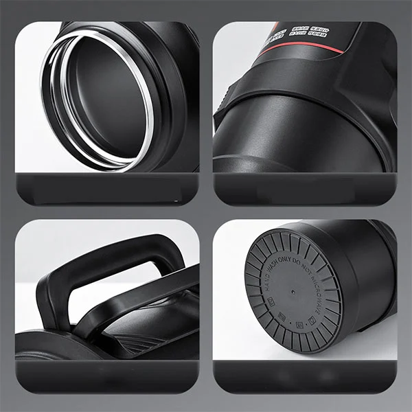 Ова термос тиквица је направљена од нерђајућег челика високог разреда, што је чисто, еколошко и мање вероватно да ће задржати бактерије. Поклопац је отворила рупе како би се осигурала сигурност под високим притиском.