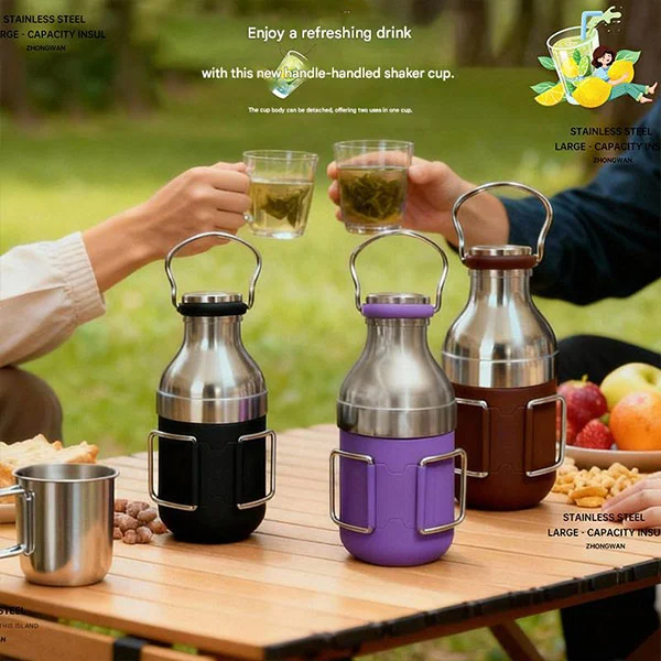 Кудикеова издржљива одвојива изолована боца на отвореном је веома кул термос, зашто то кажете? Због свог јединственог дизајна и функционалности, може се раставити у две шоље, што значи да када купите термосицу, више људи може да је користи заједно. Такође долази са ручком, што га чини веома погодним за ношење. Верујем да наша термос боца испуњава све аспекте вашег дивног живота. Било да се ради о камповању, путовању на посао, планинарењу или путовању, можемо да обезбедимо контејнере који су и изоловани и хладни, ефикасно смањујући отпад за једнократну употребу.