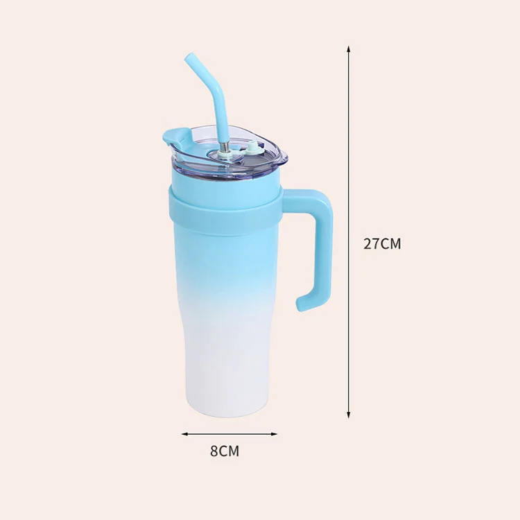 Тело купа је опремљено 304 сламом од нехрђајућег челика и силиконском млазници за храну како би се осигурало сигурно и хигијенско пиће. Као избор поклона, овај ситничар је популаран широм света и погодан је за различите прилике: употреба аутомобила, активности на отвореном, канцеларијском и кућном животу.