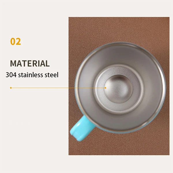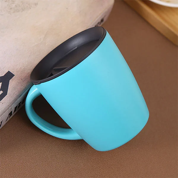Ово је шоља од нехрђајућег челика у тренду са поклопцем, заобљеним изгледом, остави вам добро расположење, постављено на сто, такође је уметничко дело.
