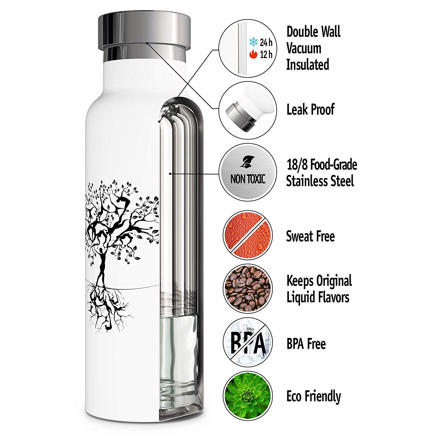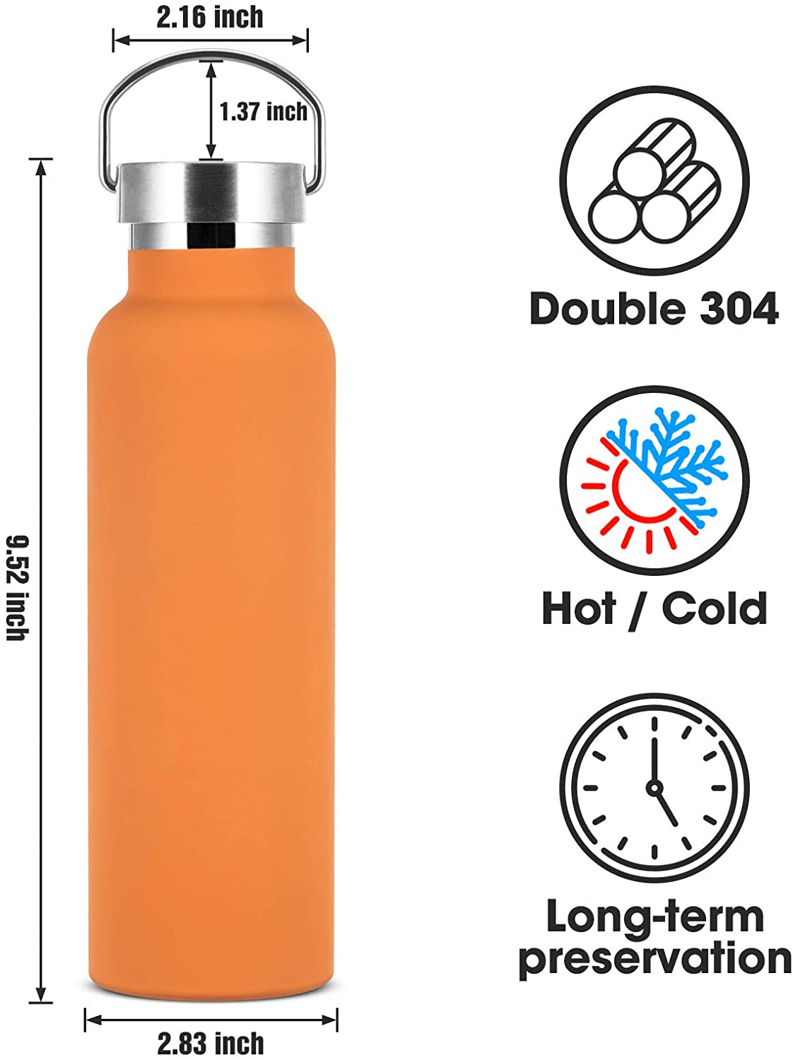 - Једноставан за ношење: боца воде од нехрђајућег челика са великом ручицом која се лако наставља. Ергономски је обликован да се једнокрако користи ветрић, врло елегантан и практичан. Савршено за теретану, канцеларијске и спољне активности - планинарење, алпинизам, камповање итд.