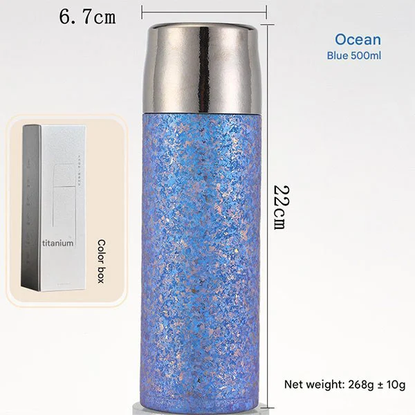 Класична пива за чај, боца од титанијума има шољу отпорну на цурење од чистог титанијума и изнутра и споља, опремљену поклопцима отпорним на цурење, поклопцима за шоље од чистог титанијума и двослојним против опекотина!
