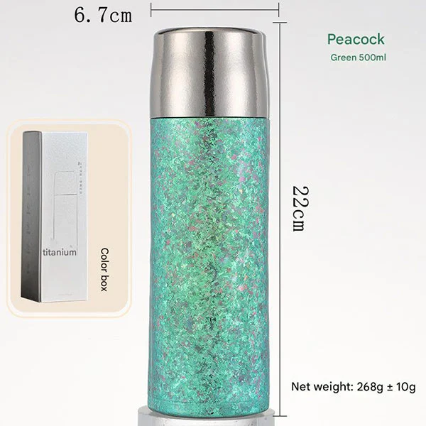 Титанијумске боце за воду имају двослојни дизајн вакуумске изолације. Наше металне боце за воду доказано пружају најбољу изолацију за ваша пића, било да се ради о охлађеној колу или врућој кафи. Топли напици могу бити топли до 8 сати, а хладни до 12 сати. (Експериментални подаци: Изолација: Додајте воду на собној температури од 99 °Ц, а температура ће премашити 60 °Ц након 6 сати изолације; Хлађење: Додајте воду на собној температури од 0 °Ц, а температура ће бити испод 5 °Ц након 6 сати изолације.)