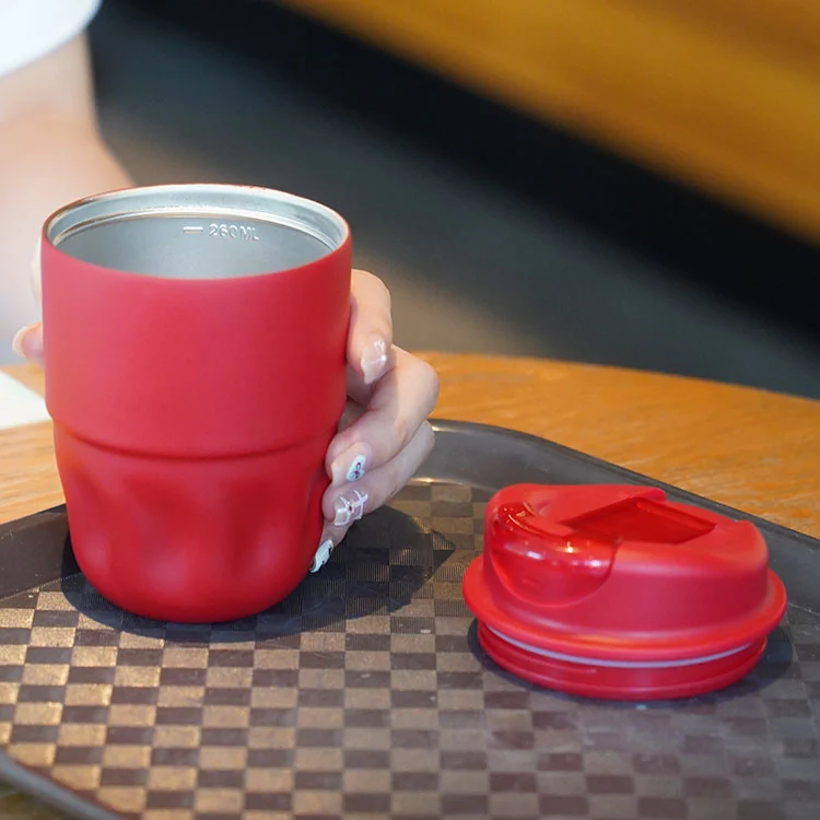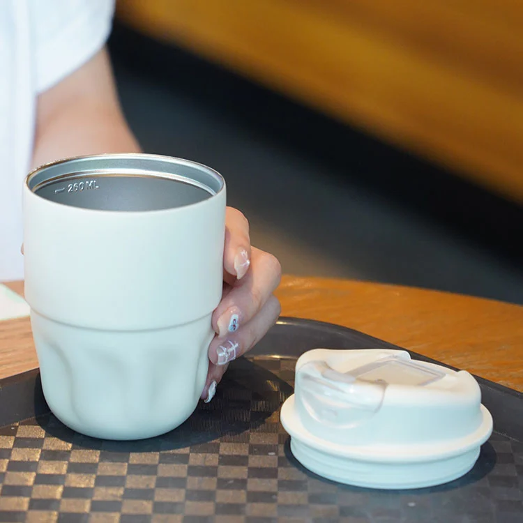 Клаг за путовање има тренди наступ са дизајном шкољке у облику латичног облика, водећи модни тренд. Направљен је од 18/8 нехрђајућег челика који апсолутно гарантује сигурност на храну. Глатке линије интегришу поклопац и тело шалице неприметно. ПП поклопац је направљен од нових материјала без рециклираних материјала, такође испуњавање стандарда безбедности хране. Једноставни дизајн отвореног отвора нуди одличну осећају руку и погодан је за једносмерно операција. Велики пречник отварања купа чини га врло згодно за додавање коцкица леда. Силиконски прстен од 360 ° не осигурава цурење у свим правцима. Долази у два капацитета, 260 мл и 450 мл, како би се задовољиле различите потребе за пићем.