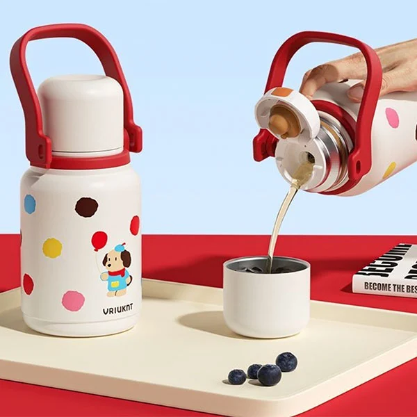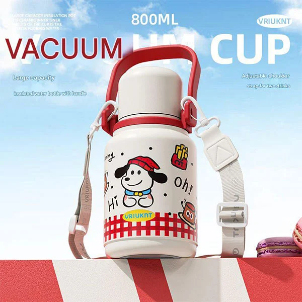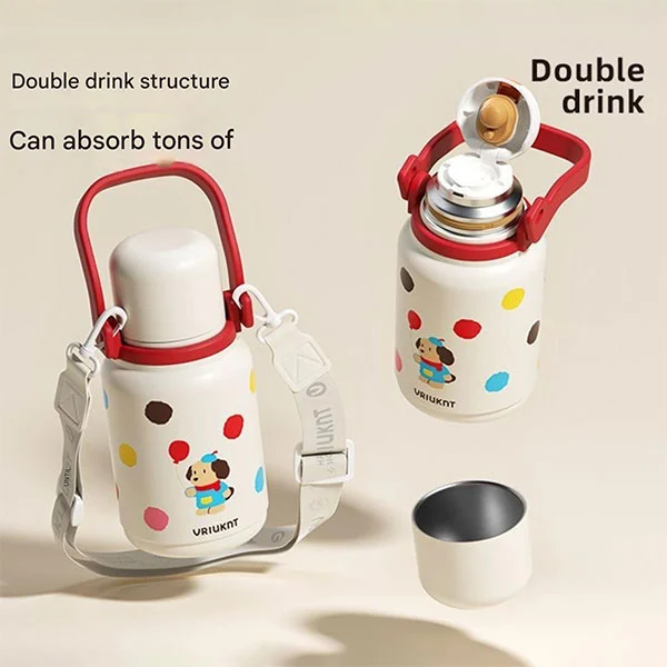 Изолована вакумска боца може да се користи као боца за воду која деца морају да иду у школу или путују, што је веома погодно за децу јер су им руке мале, а каишеви могу да им ослободе руке
