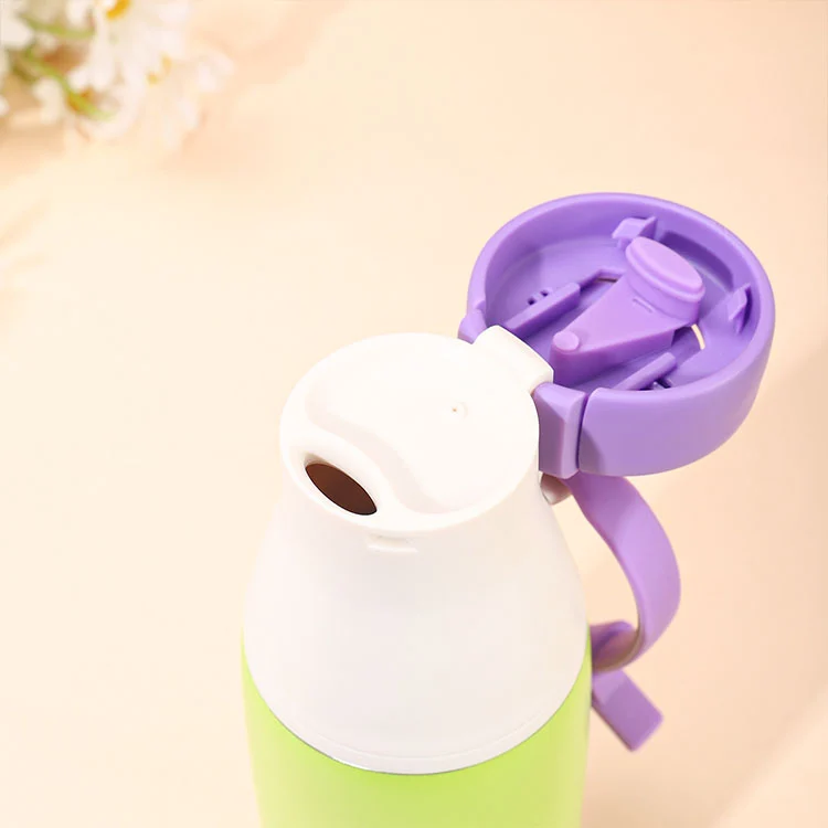 Вакум изолована флаша од нерђајућег челика 304 припада боцама за допаминско млеко, са кружним поклопцем који се лако може отворити повлачењем и закључати само притиском како би се спречило случајно отварање поклопца боце.